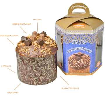 Паска, яка смакує по-домашньому, адже ми виготовляємо її за традиційною рецептурою. Вона має ніжний м’якуш з легким вершковим смаком. Яскравих акцентів додають апельсинові цукати, які увиразнюють смак легкими кисло-солодкими нотками. Для оздоби ми використали смачну глазур з чорного шоколаду, білі шоколадні крихти та цукрові квіти, ніжні як сама весна.
