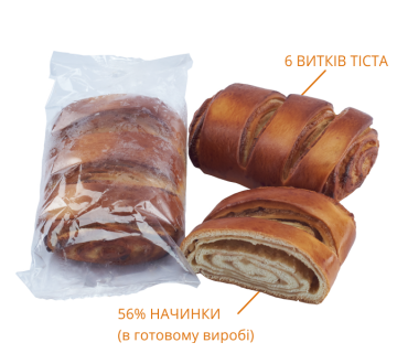 Склад: борошно пшеничне вищого сорту, наповнювач «Ірис», вода, рослинна олія «Fritex 15», яйця курячі, хлібопекарський поліпшувач, дріжджі, маргарин, цукор.
