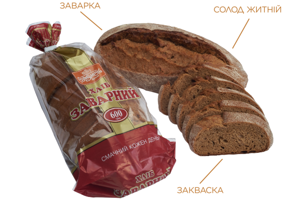 Справжній український заварний житньо-пшеничний хліб. Виготовлений на живій житній заквасці. Завдяки заварному способу приготування цього хліба, повністю розкриваються корисні властивості якісного житнього та пшеничного борошна, підсилюється насичений хлібний аромат. Поєднання двох видів борошна робить житній смак цього хліба більш ніжним з ледь відчутними солодкими нотками. Крафтовий вигляд нашого подового «Заварного» з широким апетитним надрізом підкреслює його український характер. «Заварний» подовий ми не нарізаємо, аби ви могли самостійно обрати бажану товщину духмяної скибки.