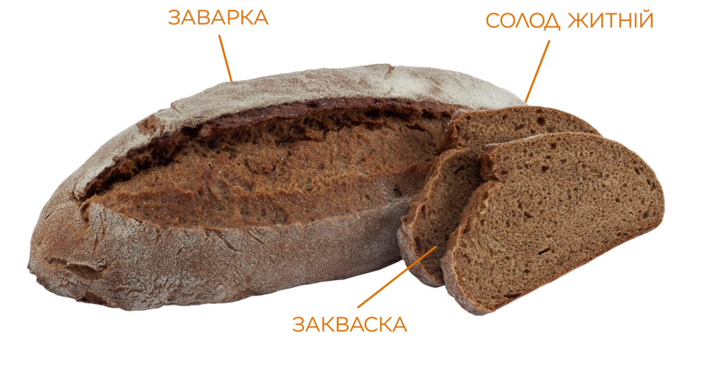 Справжній український заварний житньо-пшеничний хліб. Виготовлений на живій житній заквасці. Завдяки заварному способу приготування цього хліба, повністю розкриваються корисні властивості якісного житнього та пшеничного борошна, підсилюється насичений хлібний аромат. Поєднання двох видів борошна робить житній смак цього хліба більш ніжним з ледь відчутними солодкими нотками. Крафтовий вигляд нашого подового «Заварного» з широким апетитним надрізом підкреслює його український характер.