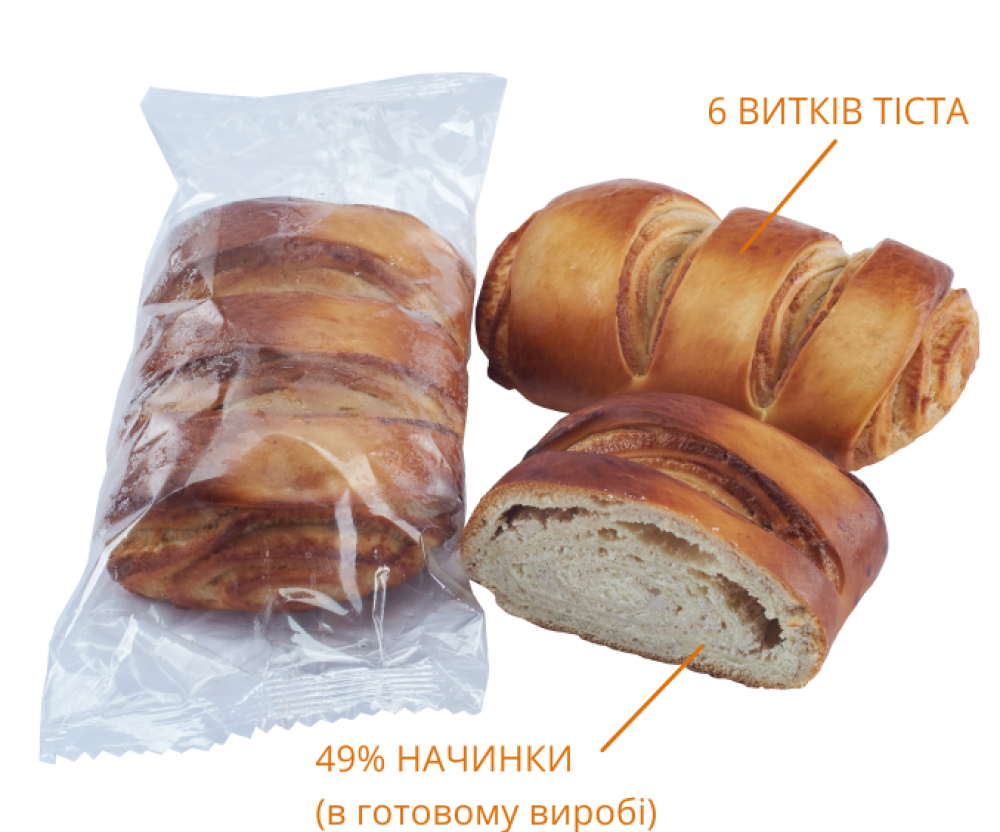Справжній український завиванець у своїй найніжнішій версії. Традиційне дуже смачне пухке тісто в поєднанні з оксамитовою сирковою начинкою. Вдосконалене нашими майстрами обладнання, дозволяє зробити шість завиточків у завиванці, то ж шари начинки і тіста чергуються в ідеальному співвідношенні. Довершує ніжну смакову композицію легкий ванільно-вершковий аромат.
